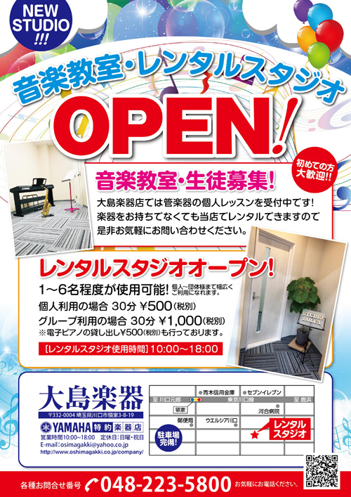 大島楽器店 音楽スタジオチラシ